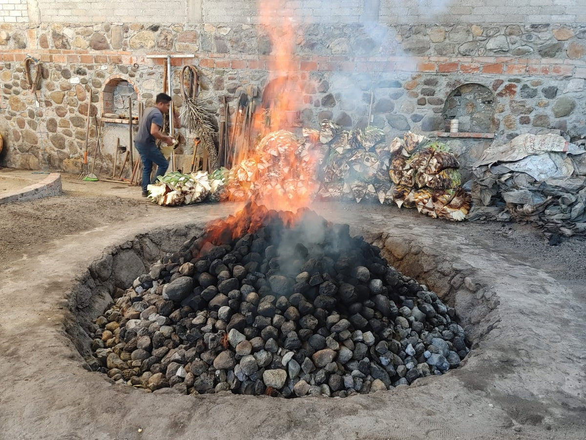 The piñas are then carried to the palenque where the magic truly begins. The piñas are cooked in an horno (earth oven). Here, the piñas are stacked in a pit, surrounded by hot rocks and covered with earth, and left to cook for several days. This slow roasting process imparts the mezcal with its distinct flavour characteristics whilst caramelizing the natural sugars in the piñas.